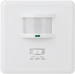 Настенный датчик движения MD 08 "Эра" скрытой установки автоматически включает и отключает осветительные и электротехнические приборы, когда фиксирует движение в области сенсора.