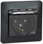 Розетка одноместная Schneider Electric GSL000748 Glossa (16 А, IP44, в сборе) с заземлением и защитными шторками, с крышкой, антрацит