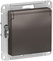 Розетка одноместная Schneider Electric ATN000646 AtlasDesign (16 А, IP20) скрытой установки, с заземлением, с защитными шторками, с крышкой, мокко