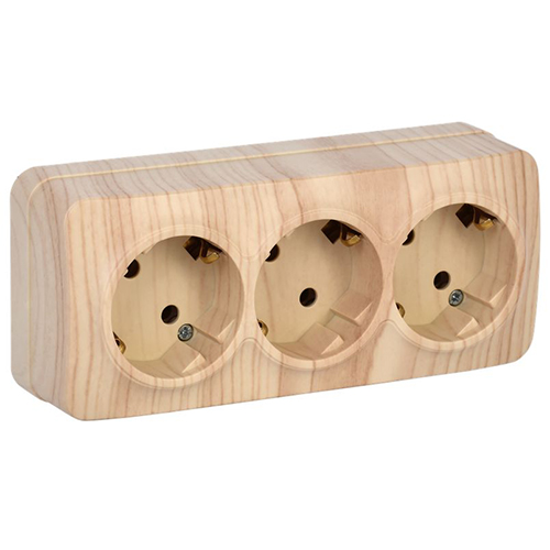 Розетка трехместная IEK РС23-3-ХС Glory (16 А, IP20) открытой установки, с заземлением, сосна