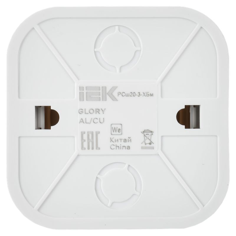 Розетка одноместная IEK РСш20-3-ХБм Glory (16 А, IP20) открытой установки, с заземлением и защитными шторками, белый матовый