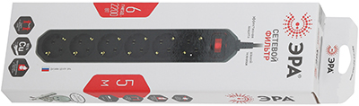 Сетевой фильтр шестиместный 5 м USF-6es-5m-B-BOX "Эра" (ПВС, 10 А, базовый уровень защиты), с заземлением, с выключателем, черный