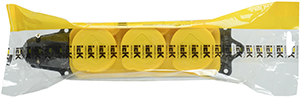 Колодка трехместная РБ33-1-0м IEK "Омега" (16 А, IP44, каучук) с заземлением, с защитными крышками, желтый