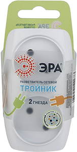Разветвитель сетевой двухместный SP-2-W "Эра" (16 А), белый