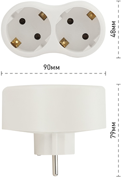 Разветвитель сетевой двухместный SPx-2e-W "Эра" (16 А) с заземлением, белый