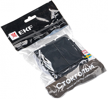 Выключатель двухклавишный проходной EKF EZV10-027-10 "Стокгольм" (10 А, IP20) скрытой установки, черный