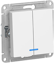 Выключатель двухклавишный Schneider Electric ATN000153 AtlasDesign (10 АХ) скрытой установки, с подсветкой, белый