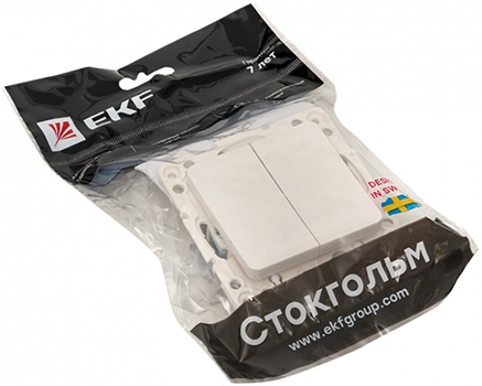 Выключатель двухклавишный EKF EYV10-123-10 "Стокгольм" (10 А, IP20) скрытой установки, белый
