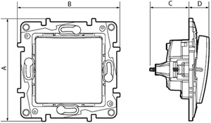 - Комбинация из 2 элементов: механизм + рамка (рамки приобретаются отдельно).