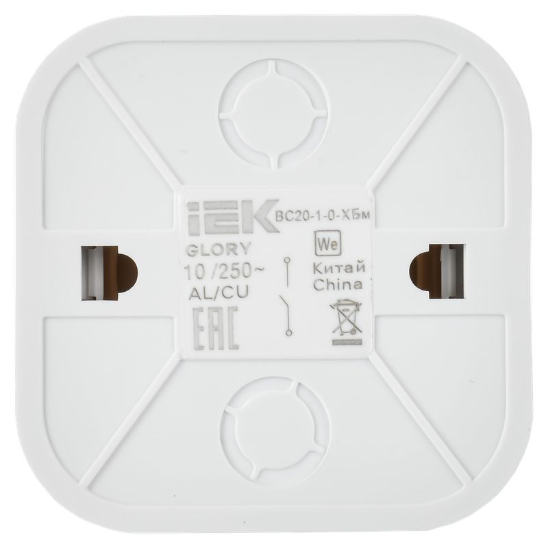 Выключатель одноклавишный самовозвратный IEK ВСс20-1-0-ХБм Glory (10 А, IP20) открытой установки, белый матовый