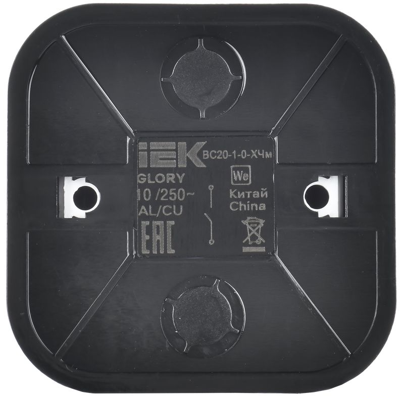 Выключатель одноклавишный IEK ВС20-1-0-ХЧм Glory (10 А, IP20) открытой установки, черный матовый