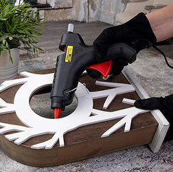 Корпус клеевого пистолета изготовлен из ударопрочной пластмассы, имеет скобу для надежной установки в нерабочем положении.