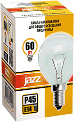 Лампа накаливания Jazzway P45 240V 60W E14 Clear (шар, E14, 60 Вт, 580 лм), прозрачный