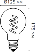 Лампа светодиодная декоративная Gauss 158802008 Filament Flexible (G125 шар, 220 В, Е27, 6 Вт, 360 лм, 2400 К), золотистый