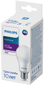 Лампа светодиодная Philips Ecohome 15 Вт (A60 стандарт, E27, 220 В, 1450 лм, 4000 К)