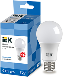Лампа светодиодная IEK LLE-A60-9-230-65-E27 (A60 стандарт, E27, 9 Вт, 810 лм), цвет свечения холодный белый