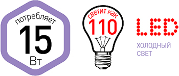 | Мощность эквивалента, Вт | 110 (лампа накаливания) |