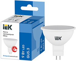 Лампа светодиодная MR16 9 Вт IEK (софит, 220 В, GU5.3, 810 лм), цвет свечения холодный белый