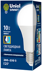 Лампа светодиодная Uniel LED-A60-10W-4000K-E27-PS PLS10WH (A60 стандарт, 220 В, 900 лм), с датчиком освещенности