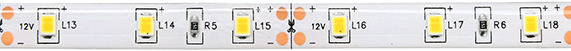 Линия отреза располагается между площадками для спайки. Минимальный участок отреза - 3 светодиода.