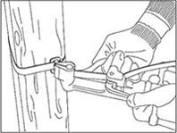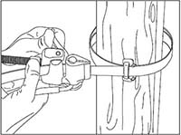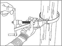 - Натянуть бандажную ленту вокруг опоры, вращая рукоятку инструмента ИНСЛ-1.
