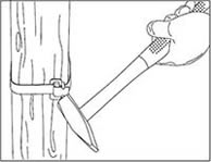 - При помощи молотка загнуть оставшуюся часть бандажной ленты и специальные прижимы на скрепе.