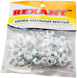 Крепеж кабеля круглый 7 мм Rexant 07-4007, белый, 50 шт.