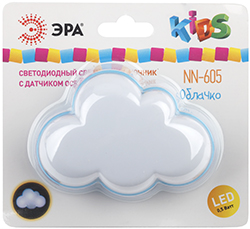 Светильник-ночник светодиодный "Эра" NN-605-LS-W "Облачко" оснащен сенсором света, включается автоматически, когда становится темно.