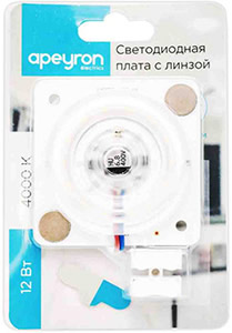 Светодиодная плата Apeyron 02-13 с линзой и встроенным драйвером предназначена для замены стандартных ламп, а также современных светодиодных источников света в настенно-потолочных светильниках.