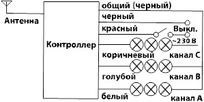 - Не надо тянуть дополнительные провода, можно подключать к 2-проводной системе 2 - 4 канала нагрузки, например: люстра + точечные светильники + светодиодная лента.
