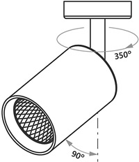 - Возможность вращать светильник вокруг своей оси + угол наклона плафона 90°.