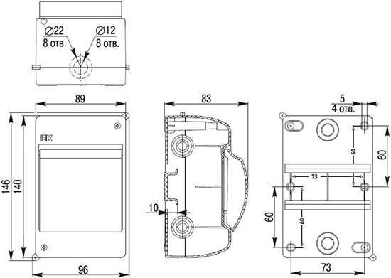 Корпуса пластиковые навесные КМПн IEK предназначены для установки в них модульной аппаратуры распределения электроэнергии переменного тока напряжением до 400 В частотой 50 Гц.