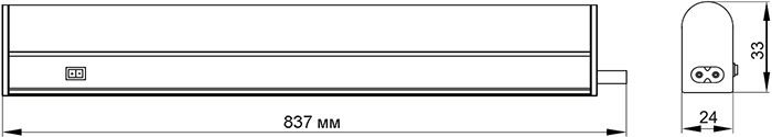 - Для подключения светильника присоединить сетевой шнур к розетке, встроенной в торец светильника.