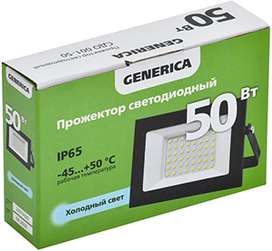 Прожектор светодиодный Generica СДО 001-50 (50 Вт, 4000 лм, 6500 К, IP65), черный