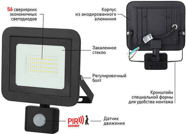 Светодиодные прожекторы "Эра" серии LPR-041 с датчиком движения подходят как для внутреннего, так и для наружного применения.