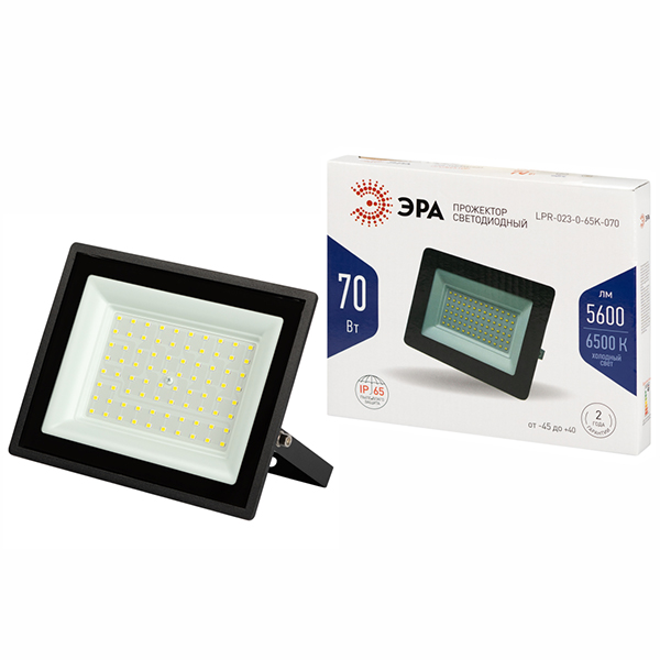 Прожектор светодиодный LPR-023-0-65K-070 "Эра" (70 Вт, 5600 лм, 6500 К, IP65), черный